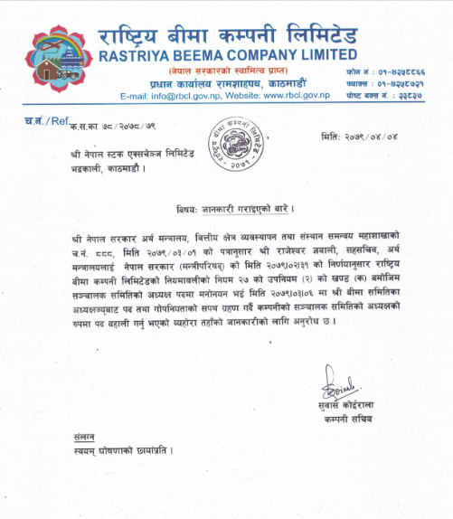नवनियुक्त अध्यक्षले साउन ४ गते नै पद तथा गोपनिगताका सपथ लिइसकेका छन् । तर नेप्सेमा सूचना भने दुई सातापछि मात्रै प्रकाशन भएको छ ।