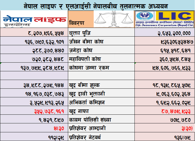 नेपाल लाइफ र एलआईसी नेपाललाई दाँजेर हेर्दा, कसको अवस्था कस्तो ? (तथ्यांक सहित)
