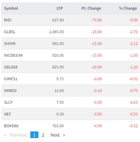 त्यस्तै, त्यस्तै, गुराँस लघुवित्तको २।७०, सिव्म सिमेन्टको २।१२, एनआईसी एसिया डिभेञ्चर १।६० र एसबिएल डिभेञ्चरको १।२० अंकले शेयर मूल्य घटेको छ ।