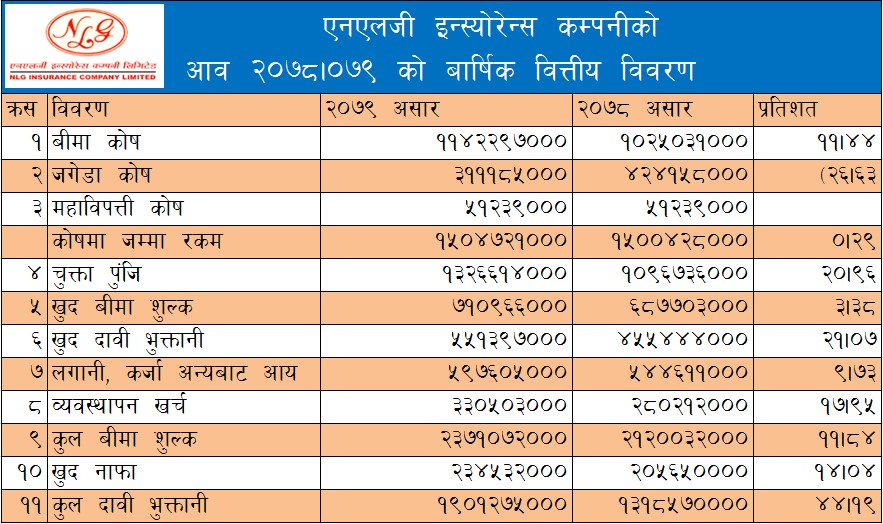 वित्तीय विवरणमा एनएलजी इन्स्योरेन्सको सबै सूचांक उत्साहप्रद, व्यवसाय र मुनाफा दुवै बढ्यो