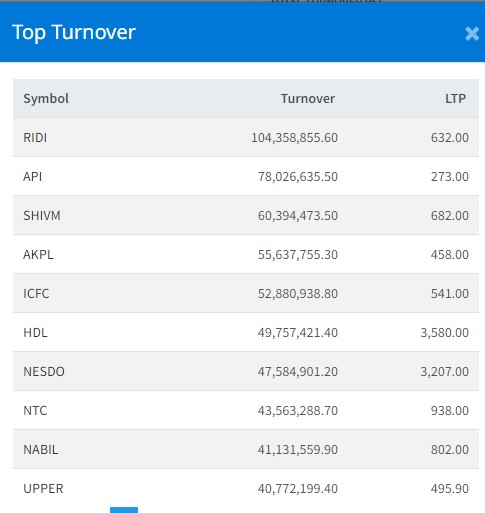 त्यस्तै, अपि पावरको ७ करोड ८० लाख, शिवम् सिमेन्ट्सको ६ करोड ३ लाख, अरुण काबेली पावरको ५ करोड ५६ लाख र आइसिएफसी फाइनान्सको ५ करोड २८ लाख रुपैयाँमाथिको कारोबार भएको छ ।