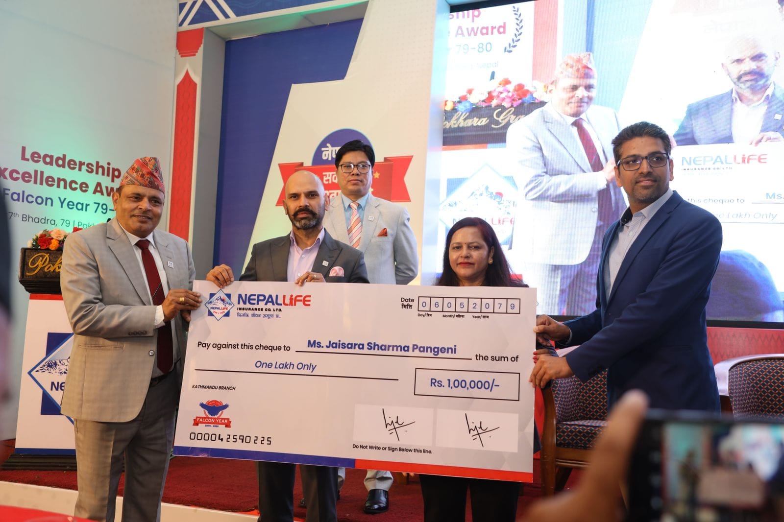 त्यसैगरी, नेपाल लाइफको तर्फबाट सिओटी तथा टिओटी बिजेता भई एमडिआरटीको सम्मेलनमा अमेरिकाको बोस्टर्नमा सहभागी भएर फर्केकी जैसरा शर्मा पंगेनीलाई एक लाख रुपैयाँ नगद सहित सम्मानित गरिएको थियो ।