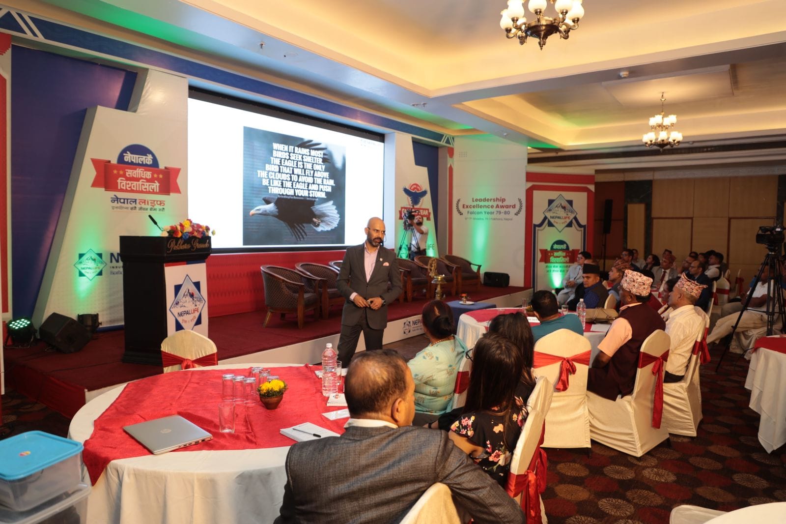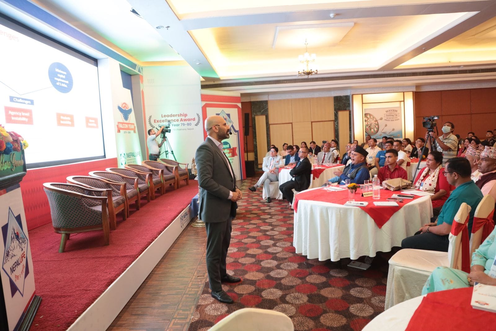 पोखरास्थित ग्राण्ड होटलमा देशैभरिका सिनियर बीमा अभिकर्ता, एजेन्सी म्यानेजरहरु, उत्कृष्ट शाखा प्रमुख तथा काठमाडौंबाट उच्च व्यवस्थापकहरु डेपुटी जनरल म्यानेजर उमापति पोखरेल, सहायक महाप्रबन्धक दिग्बिजय सिंघल, ओम प्र्रकाश पुडासैनी, अमित कयाल, प्रेम प्रसाद रेग्मी, बिनोद भुजेललगायतको सिंगो व्यवस्थापन टिम भेला भएको कारण आज सम्पन्न भएको हो।