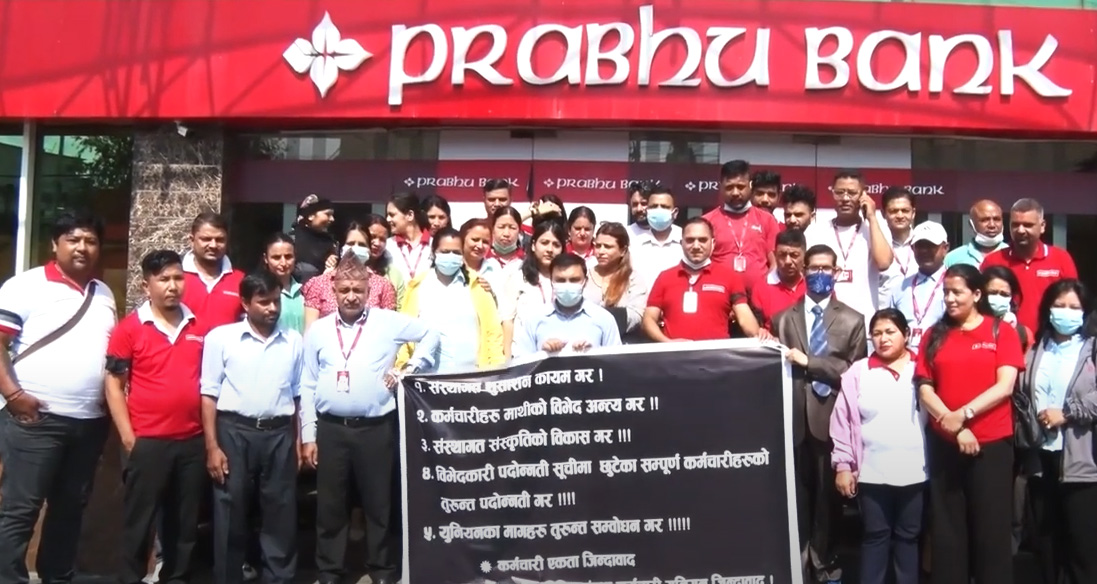 बिभेदकारी बढुवाविरुद्ध प्रभु बैंकका कर्मचारी आन्दोलित, दैनिक काम ठप्प पार्ने चेतावनी