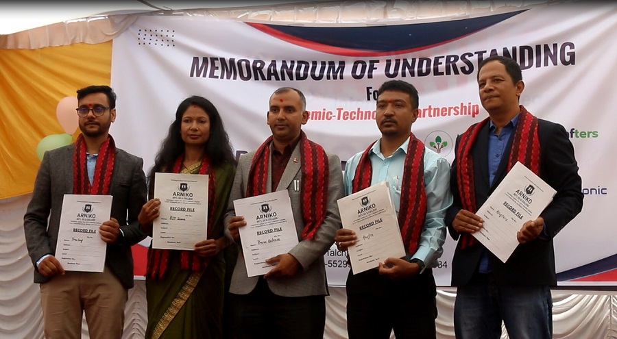 काठमाडौंं । अरनिको इन्टरनेशनल एसएस एण्ड कलेजले आफ्नो प्रांगणमा आयोजित एक भव्य समारोहमा चार ख्यातिप्राप्त राष्ट्रिय तथा अन्तर्राष्ट्रिय आईटी कम्पनीहरुसँग समझदारी पत्रमा हस्ताक्षर गरेको छ । समझदारी पत्रले उच्च माध्यमिक तहका विद्यार्थीहरूलाई गुणस्तरीय शिक्षा उपलब्ध गराउने उद्देश्य राखेको छ । जसले बजारमा काम गर्न सक्षम जनशक्ति उत्पादन गर्ने लक्ष्य राखेको छ।