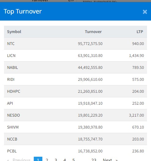 त्यसैको असर आजको कारोबार रकममा देखिएको हो ।शेयरबजारमा आज उक एक अर्ब एक लाख माथिको मात्रै कारोबार हुन पुगेको छ । सो रकम बराबरको कारोबार हुँदा सर्वाधिक नेपाल टेलिकमको ९ करोड ५७ लाख माथिको कारोबार भएको छ ।