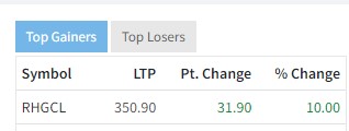 कम्पनीको शेयर ३१९ रुपैयाँबाट कारोबार खुलेको हो । कारोबारमा आएको पहिलो दिन नै सो कम्पनीको शेयरमा सकारात्मक सर्किट लागेको हो । यो समाचार तयार पार्दासम्म राप्ती हाइड्रोको शेयर १० प्रतिशतले बढेर शेयरमूल्य ३५० रुपैयाँ ९० पैसा पुगेको छ ।