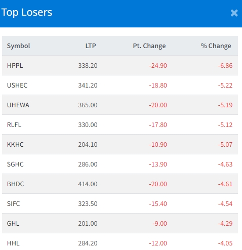 शेयर बजारमा ओरालो लागेसँगै आज हिमालयन पावरको ६।८६, अप्पर सोलु हाइड्रोको ५।२२, अप्पर हेवाखोला हाइड्रोपावरको ५।१९, रिलायन्स फाइनान्सको ५।१२ र खानीखोला हाइड्रोपावरको ५ प्रतिशतले शेयर मूल्य घटेको छ ।