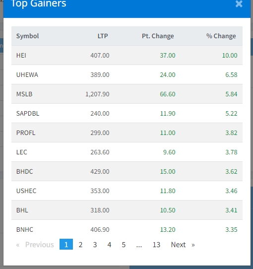 आज हिमालयन इभरेष्ट इन्स्योरेन्सको शेयर मूल्यमा सर्किट लागेको छ । त्यस्तै, अप्पर हेवाखोला हाइड्रोपावरको ६।५८, महुली लघुवित्तको ५।८४, सप्तकोशि डेप्लपमेन्ट बैंकको ५।२२ र प्रोग्रेसिभ फाइनान्सको ३।८२ प्रतिशतले शेयर मूल्य बढेको छ ।