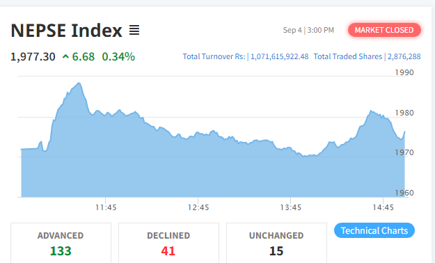 काठमाडौं । साताको पहिलो दिन शेयरबजारमा सामान्य अंकको सुधार देखिएको छ । उतारचढावकाबीच नेप्से सूचक आज ६.६८ अंकले बढेर १९७७ को विन्दुमा कायम हुन पुगेको छ ।