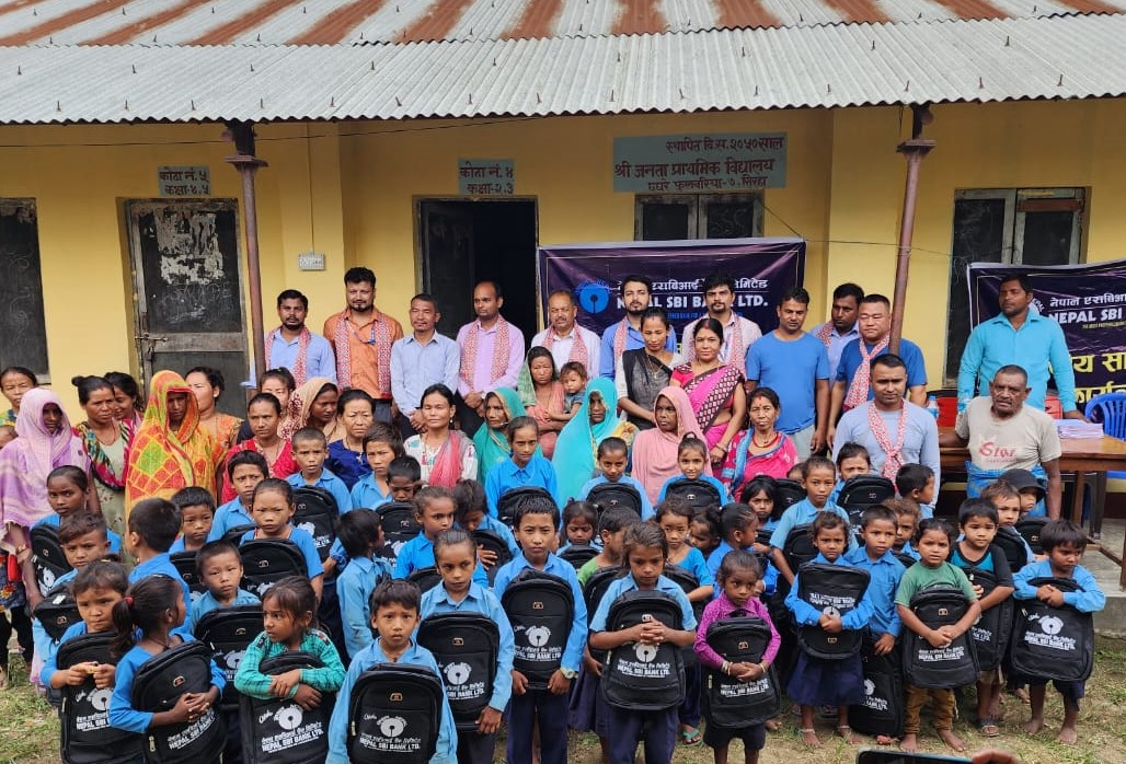काठमाडौं । नेपाल एसबिआई बैंकले अन्तर्राष्ट्रिय साक्षरता दिवसको अवसर पारेर, सिरहा जिल्लाको फुलवरियामा वडा नम्वर ७ मा रहेको श्री जनता आधारभूत विद्यालयमा अध्ययनरत विद्यार्थीहरुलाई आफ्नो सामाजिक उत्तरदायित्व अन्तर्गत स्कुल झोला प्रदान गरेको छ ।