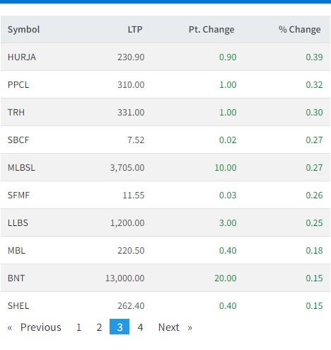 त्यस्तै, सामुदायिक लघुवित्त, दोर्दी खोला, नबिल ब्यालेन्स फण्ड १, युनिलिभर नेपाल, शिव श्री, नेपाल पुनर्बीमा, मनकामना स्मार्ट लघुवित्त, सिटिजन म्युचुअल फण्ड १ र साधना लघुवित्तको शेयर बढेको छ।