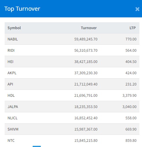 त्यस्तै, रिडी हाइड्रोपावरको ५ करोड ६३ लाख, हिमायलन एभरेष्ट इन्स्योरेन्सको ३ करोड ८४ लाख, अरुण काबेली पावरको ३ करोड ७३ लाख र अपि पावर कम्पनीको २ करोड १७ लाख रुपैयाँमाथिको कारोबार भएको छ ।