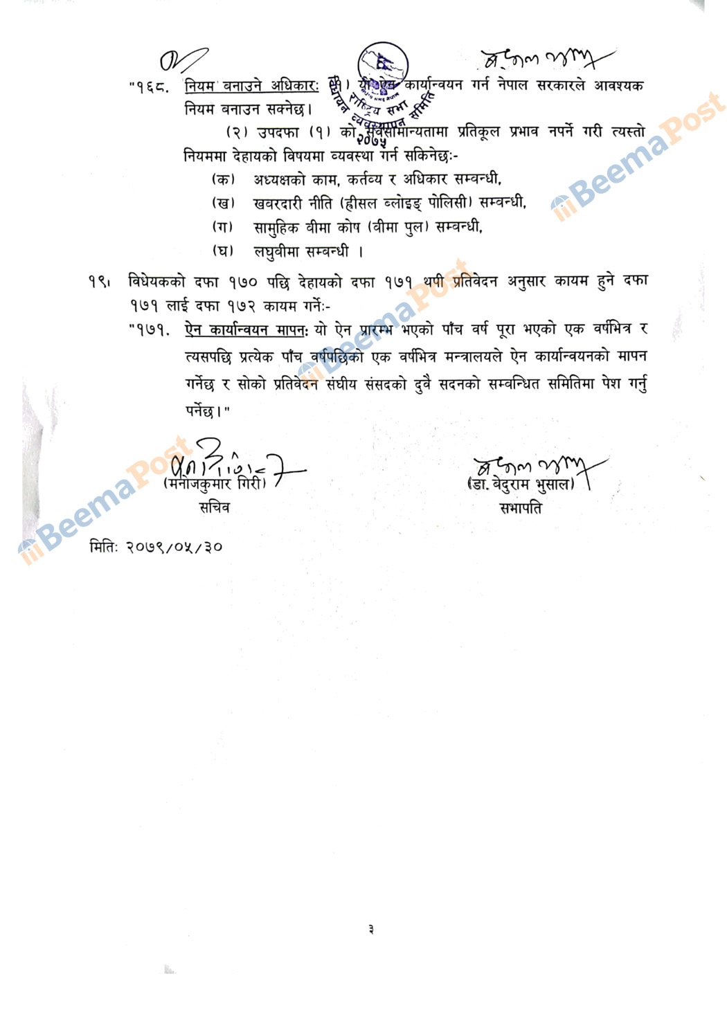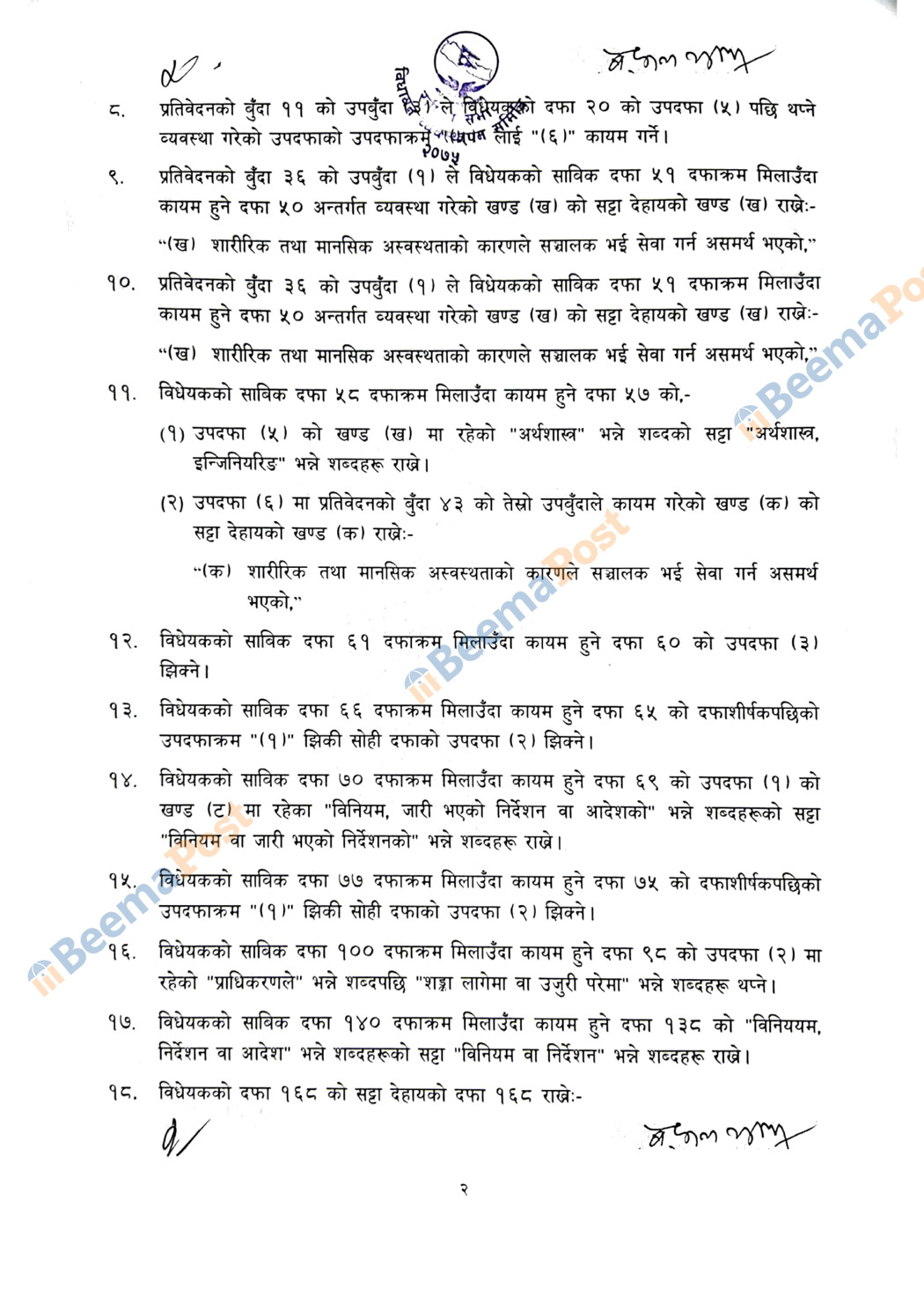 राष्ट्रियसभाका बीमा विधेयकमाथि १९ बुँदे संशोधन, के के भए परिवर्तन ? (प्रतिवेदनसहित)
