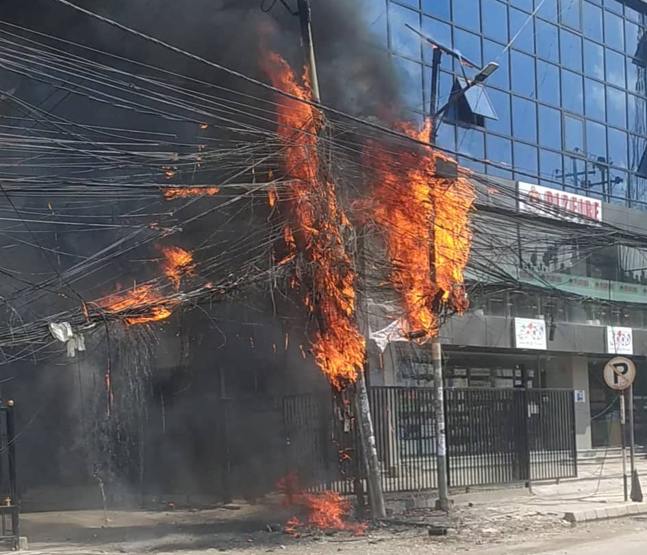 न्युप्लाजास्थित विद्युतीय पोलमा आगलागी (भिडियोसहित)