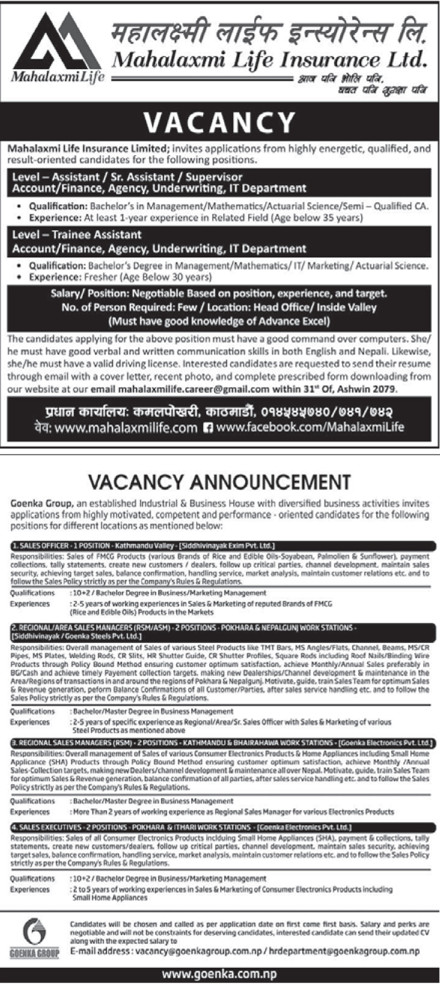 महालक्ष्मी लाइफ इन्स्योरेन्सले खुलायो रोजगारको अवसर, कति चाहिन्छ शैक्षिक योग्यता ?