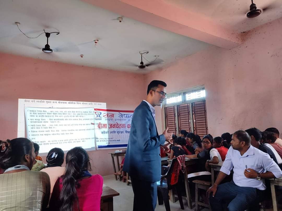 उक्त कार्यक्रम श्री बि.पी. कोईराला माध्यमिक विधालय सपही, धनुषामा सम्पन्न भएको हो ।कार्यक्रम धनुषा नगर प्रमुख भोगेन्द्र मिश्रको उपस्थितीमा कक्षा १२ मा अध्यनरत विद्यार्थीहरुसँग बीमा शिक्षा कार्यक्रम गरिएको थियो । कार्यक्रमबाट बीमाबारे थप प्रकाश भएको कम्पनीले जनाएको छ।