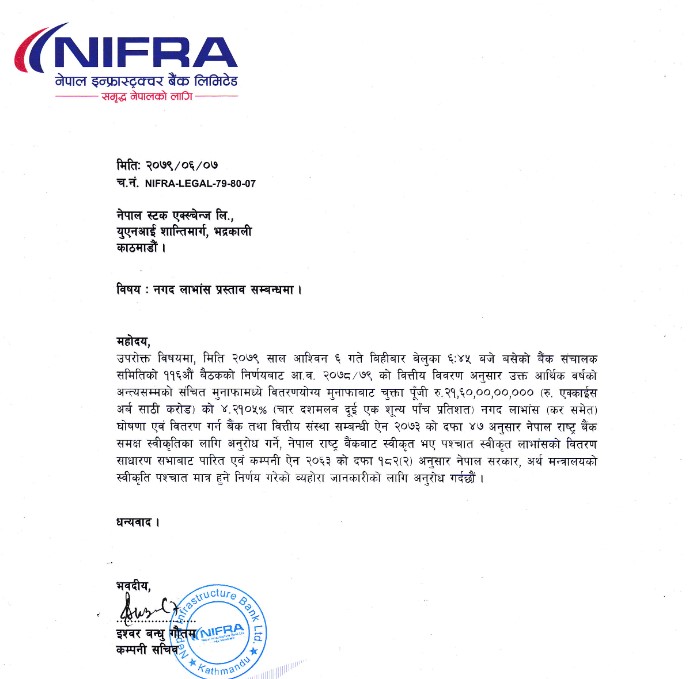निफ्राको लाभांश घोषणा, कति दिँदैछ नगद लाभांश ?