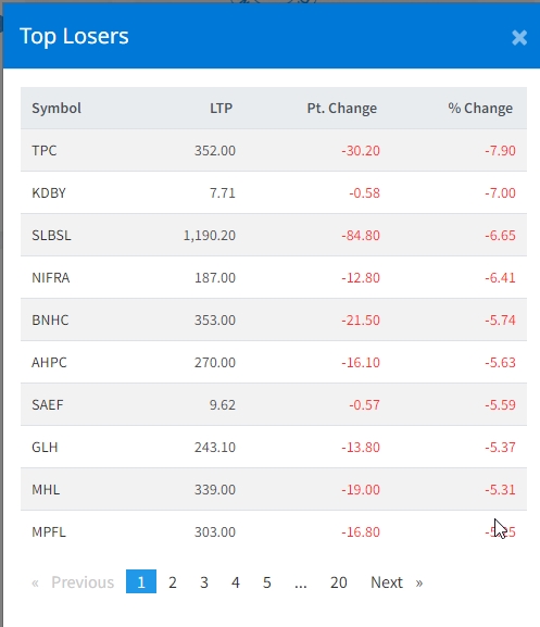 त्यस्तै, कुुमारी धनगडी योजनाको ७, सामुदायिक लघुवित्तको ६।६५, नेपाल इन्फ्रास्टक्चर बैंकको ६।४१ र बुद्ध भुुमी नेपाल हाईड्रोपावर कम्पनीको ५।७४ अंकले शेयर मूल्य घटेको छ ।