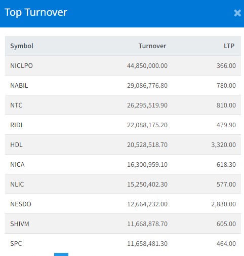 त्यस्तै, नबिल बैंकको २ करोड ९० लाख, एनटिसीको २ करोड ६२ लाख, रिडी हाइड्रोपावरको २ करोड २० लाख र हिमालय डिस्टिलरीको २ करोड ५ लाख रुपैयाँमाथिको कारोबार भएको छ।