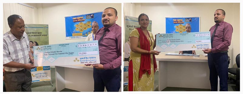 कुमारी बैंकद्वारा ७ जना ग्राहकहरुलाई बीमा वापतको रकम हस्तान्तरण