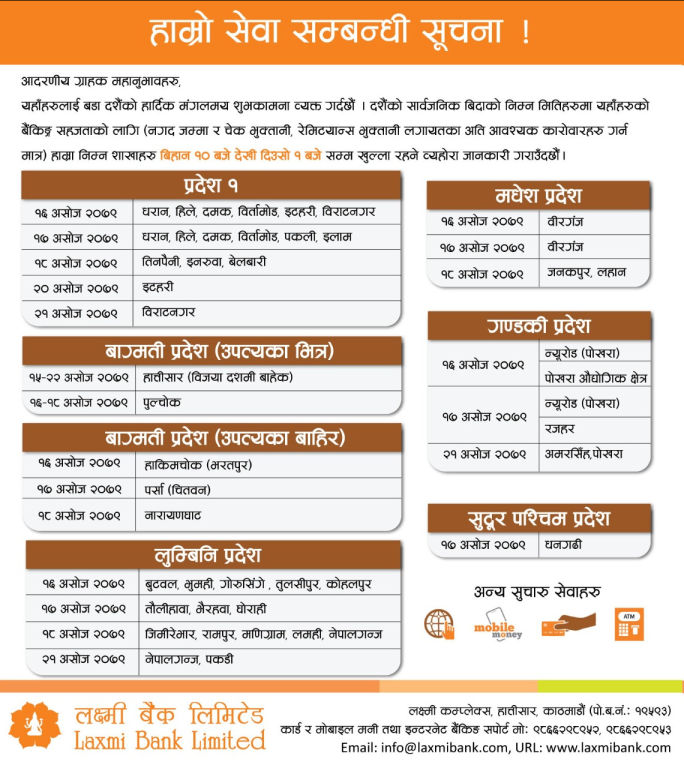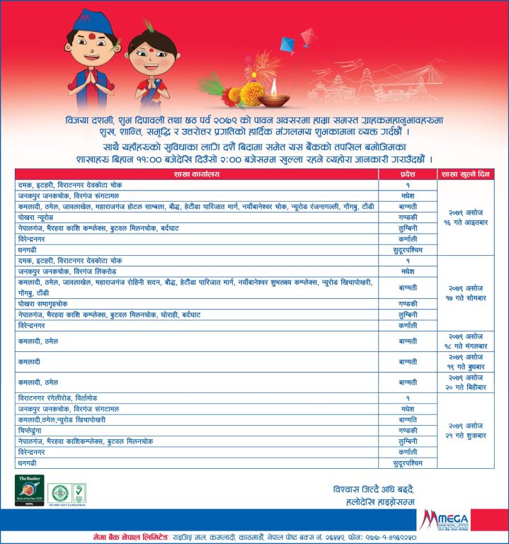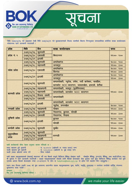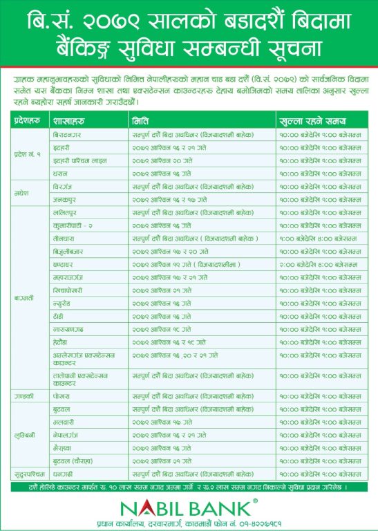 दशैं बिदामा पनि कुन-कुन बैंकले दिँदैछन् बैंकिङ सेवा ?(सूची सहित)