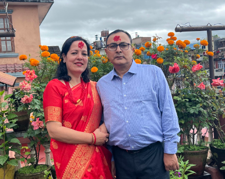 बीमा समितिका कार्यकारी निर्देशक राजुरमण पौडेल श्रीमतीको साथमा दशैंको फोटो