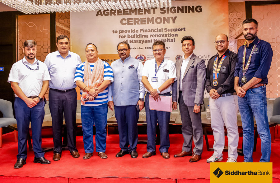 काठमाडौं । सिद्घार्थ बैंक लिमिटेडले नारायणी अस्पतालको भवनलाई मर्मत तथा सम्भारको लागि आर्थिक सहयोग गर्ने भएको छ । बैंकले असोज २६ गते वीरगंज स्थित नारायणी अस्पतालको भवनलाई मर्मत लागि ५५ लाख रुपैयाँ सम्मको आर्थिक सहयोग प्रदान गर्न अस्पतालसँग सम्झौता गरेको हो ।