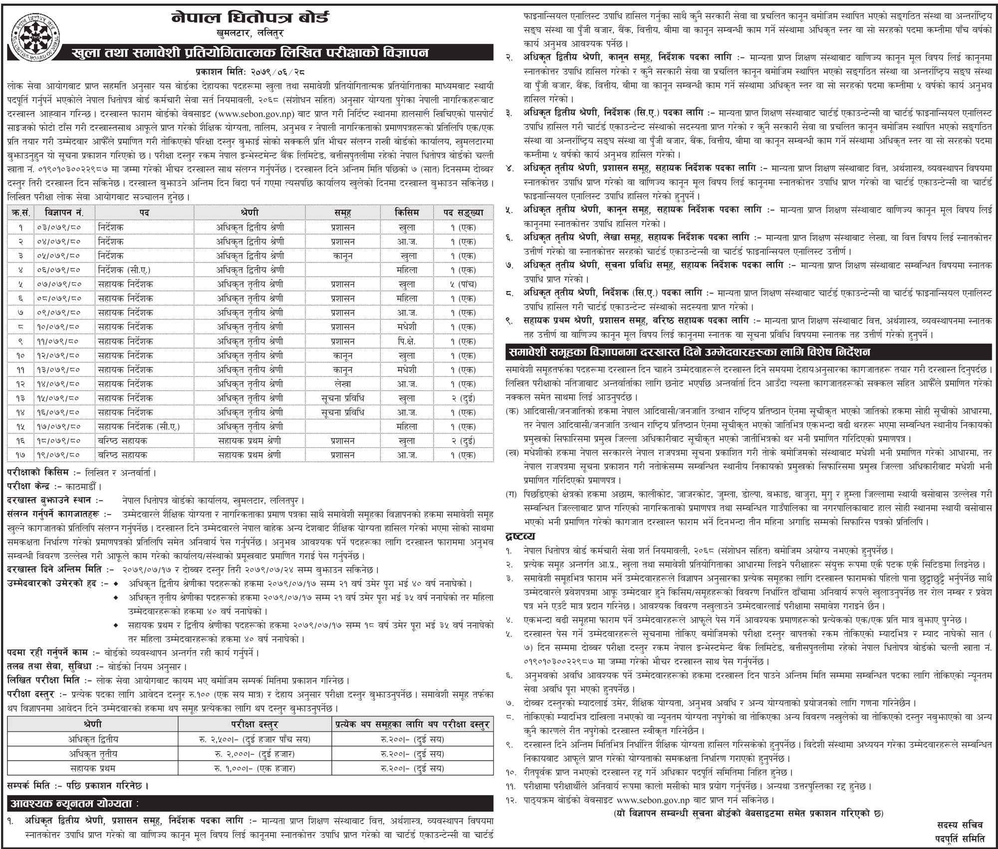 नेपाल धितोपत्र बोर्डले खुलायो रोजगारको अवसर