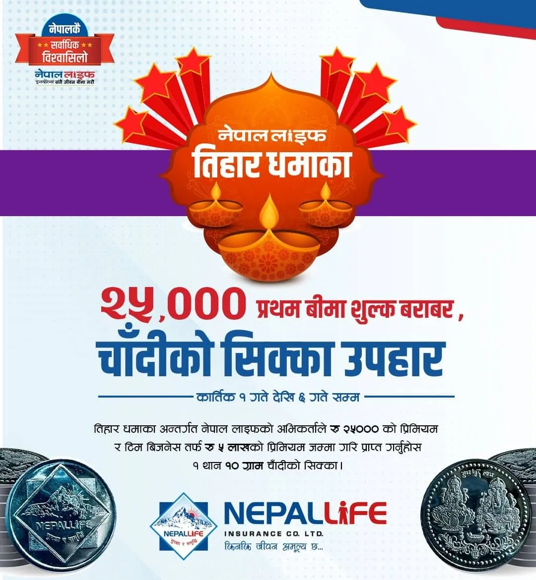 नेपाल लाइफले अभिकर्ताहरुको लागि ल्यायो तिहार स्किम, उत्कृष्टले चाँदीको सिक्का पाउने