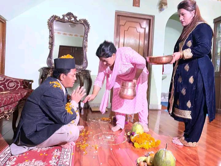 दिनभर नेपाल सम्वत नयाँ वर्ष ११४३ लाई स्वागत गरेका नेवार समुदायहरुले साँझ म्हपूजा गरेका हुन् । आत्मको पूजा गरेर मनाएका हुन् ।