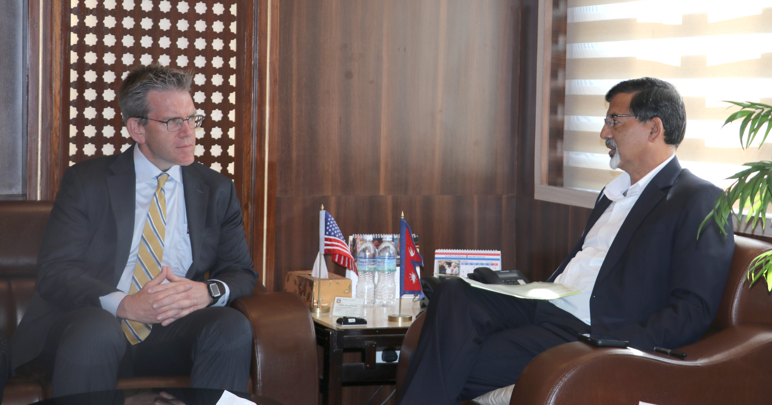 काठमाडौं । अर्थमन्त्री जनार्दन शर्मा ‘प्रभाकर’ र नेपालका लागि नवनियुक्त अमेरिकी राजदूत डिन आर। थम्प्सनबीच अर्थ मन्त्रालयमा मंगलबार बिहान शिष्टाचार भेट भएको छ ।