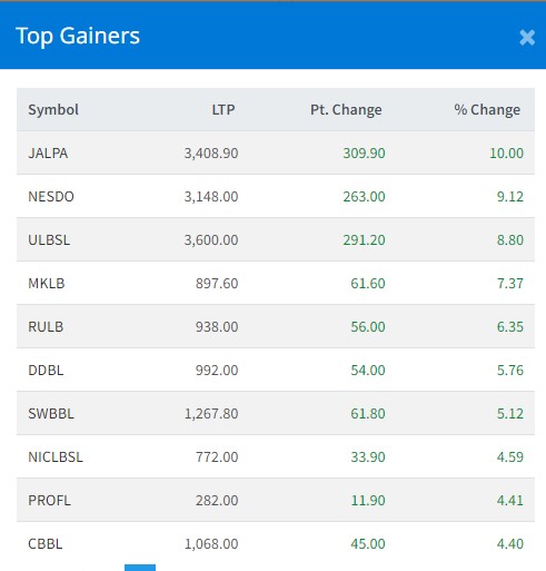 त्यस्तै, नेष्डो समृद्ध लघुवित्तको शेयरमूल्य पनि ९.१२ प्रतिशत अर्थात् २६३ रुपैयाँले बढेर शेयरमूल्य ३१४८ रुपैयाँ पुगेको छ । साथै, उपकार लघुवित्तको ८.८० प्रतिशत, मनकामना स्मार्ट लघुवित्तको ७.३७ प्रतिशत, राष्ट्र उत्थान लघुवित्तको ६.३५ प्रतिशत, डिप्रोक्स लघुवित्तको ५.७६ प्रतिशत, स्वाबलम्बन लघुवित्तको ५.१२ प्रतिशत, एनआइसी एशिया लघुवित्तको ४.५९ प्रतिशत र छिमेक लघुवित्तको ४.४० प्रतिशतले शेयरमूल्य बढेको छ ।