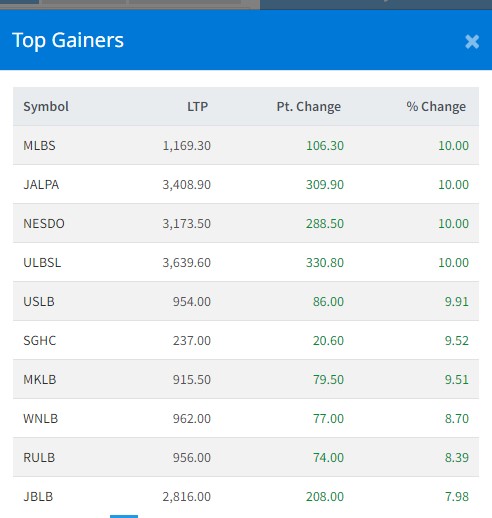 आज शेयरबजारमा सातवटा कम्पनीको शेयरमा सकारात्मक सर्किट लागेको छ । अधिकांश लघुवित्त संस्थाहरुको शेयरमुल्य आज बढेको छ । मानुषी लघुवित्त, जाल्पा सामुदायिक लुघवित्त, नेष्डो समृद्ध लघुवित्त, उपकार लघुवित्त, उन्नती सहकार्य लघुवित्त र श्वेत गंगा हाइड्रोपावरको शेयरमा सकारात्मक सर्किट लागेको छ ।