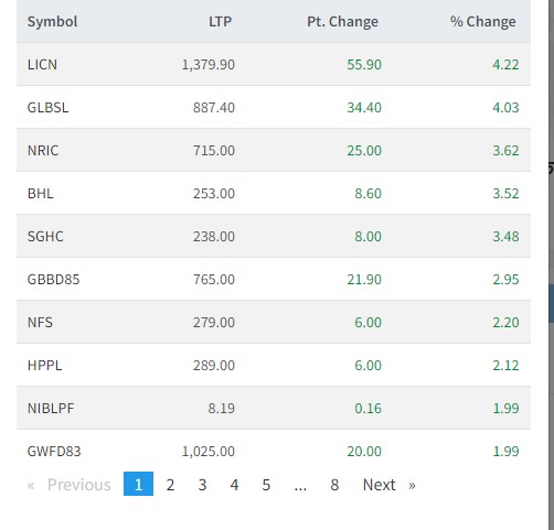 त्यस्तै, गुरास लघुवित्त, पुनर्बीमा कम्पनी, बलेफी हाईड्रोपावर र श्वेत गंगाको शेयरमा सुधार देखिएको छ।