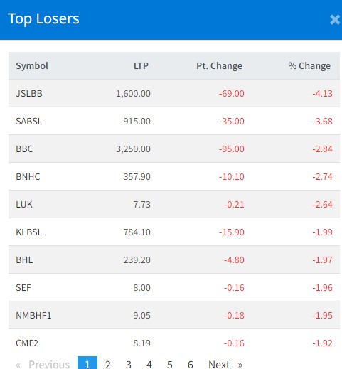 त्यस्तै, सबैको लघुवित्तको ३.६८ प्रतिशत, विशाल बजार कम्पनीको २.८४ प्रतिशत, बुद्धभूमि नेपाल हाइड्रोपावरको २.७४ प्रतिशत र लक्ष्मी उन्नती कोषको २.६४ प्रतिशतले घटेको छ ।