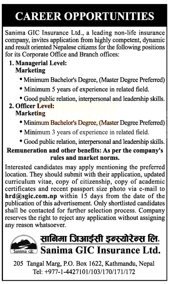 सानिमा जिआइसी इन्स्योरेन्सले खुलायो रोजगारको अवसर, कति चाहिन्छ शैक्षिक योग्यता ?