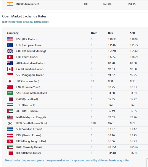 नेपाल राष्ट्र बैंकका अनुसार आज १ अमेरिकी डलरको खरिददर १३० रुपैयाँ ३५ पैसामा र विक्रीदर १३० रुपैयाँ ९५ पैसामा नेपाली बजारमा खरिदविक्री भइरहेको छ ।