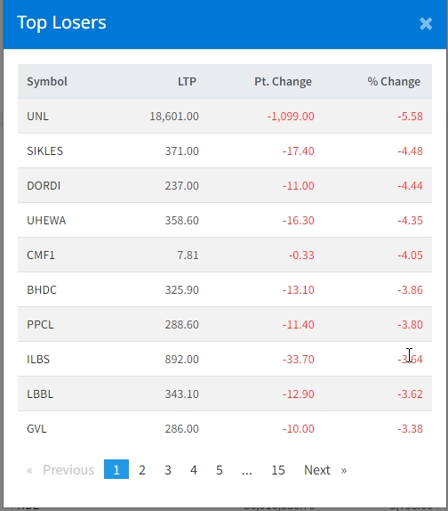 काठमाडौं । देशमा भएको निर्वाचन सम्पन पछि भएको पहिलो कारोवारको दिन शेयर बजार ओरालो लागेको छ । आज नेप्से परिसुचक ७।१३ अंकले घटेर १९२९।७० को विन्दुमा कायम भएको छ । शेयर बजार ओरालो लागेसँगै युनिलिभर नेपालको शेयर ५।५८ प्रतिशतले घटेको छ ।