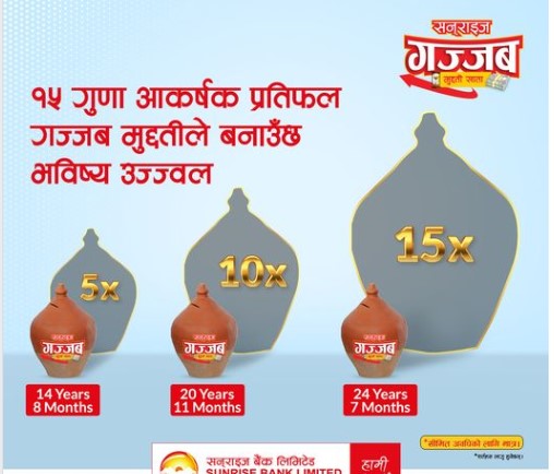१५ गुणासम्मको प्रतिफल दिने सनराइज बैंकको गज्जबकोे मुद्दती खातामा ग्राहकको आकर्षण बढ्दै, यस्ता छन् सुविधाहरु