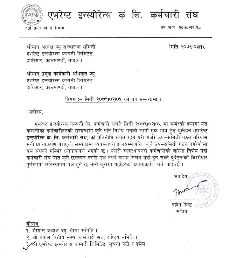 हिमालयन एभरेष्ट इन्स्योरेन्सका डेपुटी सिईओसहित आधा दर्जन कर्मचारीद्धारा राजिनामा, बीमा प्राधिकरणले ध्यान नदिँदा कम्पनी अप्ठेरोमा