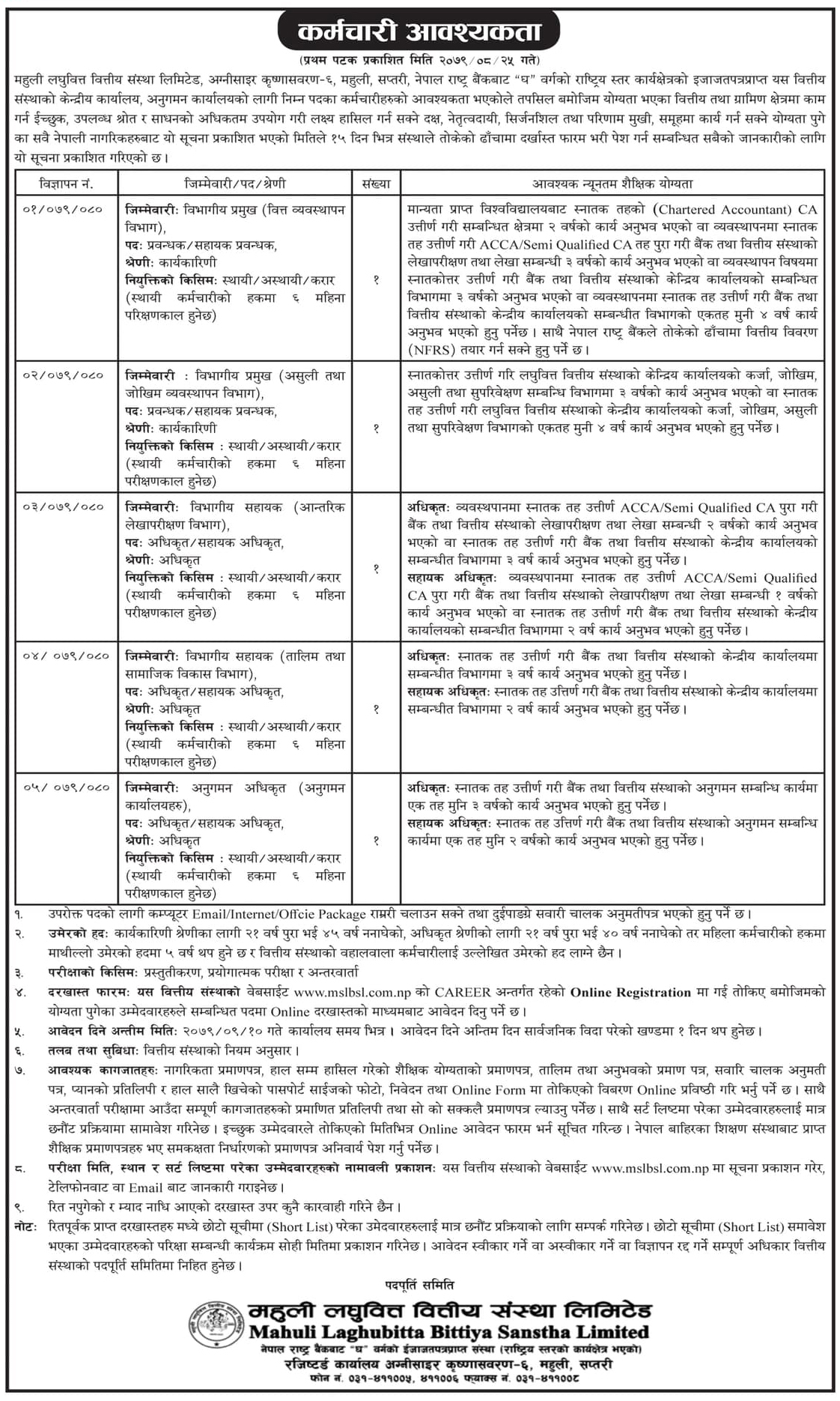 महुली लघुवित्तद्धारा कर्मचारी माग, कति चाहिन्छ शैक्षिक योग्यता ?