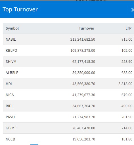 शेयरबजार बढेसँगै आज कारोबार एक अर्ब ३६ करोड रुपैयाँ माथिको भएको छ । सर्वाधिक नबिल बैंकको २१ करोड ३२ लाख ४१ हजार रुपैयाँमाथिको कारोबार भएको छ ।