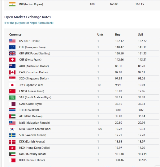 यस्तो छ आजको विदेशी मुद्राको विनिमयदर