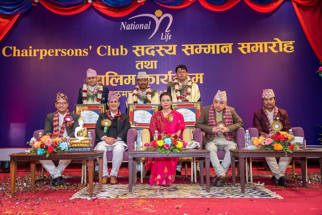 काठमाडौं । गत आवको व्यवसायका आधारमा नेशनल लाइफले तीन उत्कृष्ट एजेन्सी म्यानेजर र तीन जना उत्कृष्ट बीमा अभिकर्ता घोषणा गरेको छ । कम्पनीको यही पुस ५, ६ र ७ गते काठमाडौंमा सम्पन्न भएको चेयरपर्सन सदस्य सम्मान कार्यक्रममा कम्पनीकी अध्यक्ष प्रेमा राज्यलक्ष्मी शाहले उत्कृष्ट एजेन्सी र अभिकर्तालाई भव्य रुपमा सम्मान र पुरस्कार वितरण गरेकी छिन् ।
