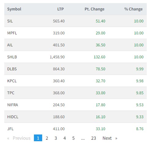 त्यस्तै, तेह्रथुम पावर, निफ्रा, हाईड्रो इलेक्डिसिटि र जानकी फाइनान्सका लगानीकर्ताले आज सर्वाधिक कमाएका छन् ।
