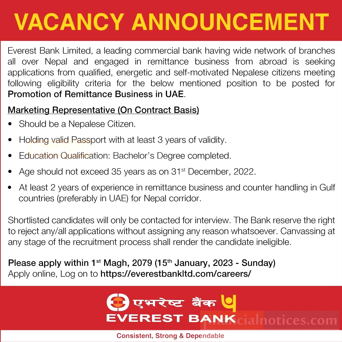 एभरेष्ट बैकले माग्यो कर्मचारी, कति चाहिन्छ शैक्षिक योग्यता ?