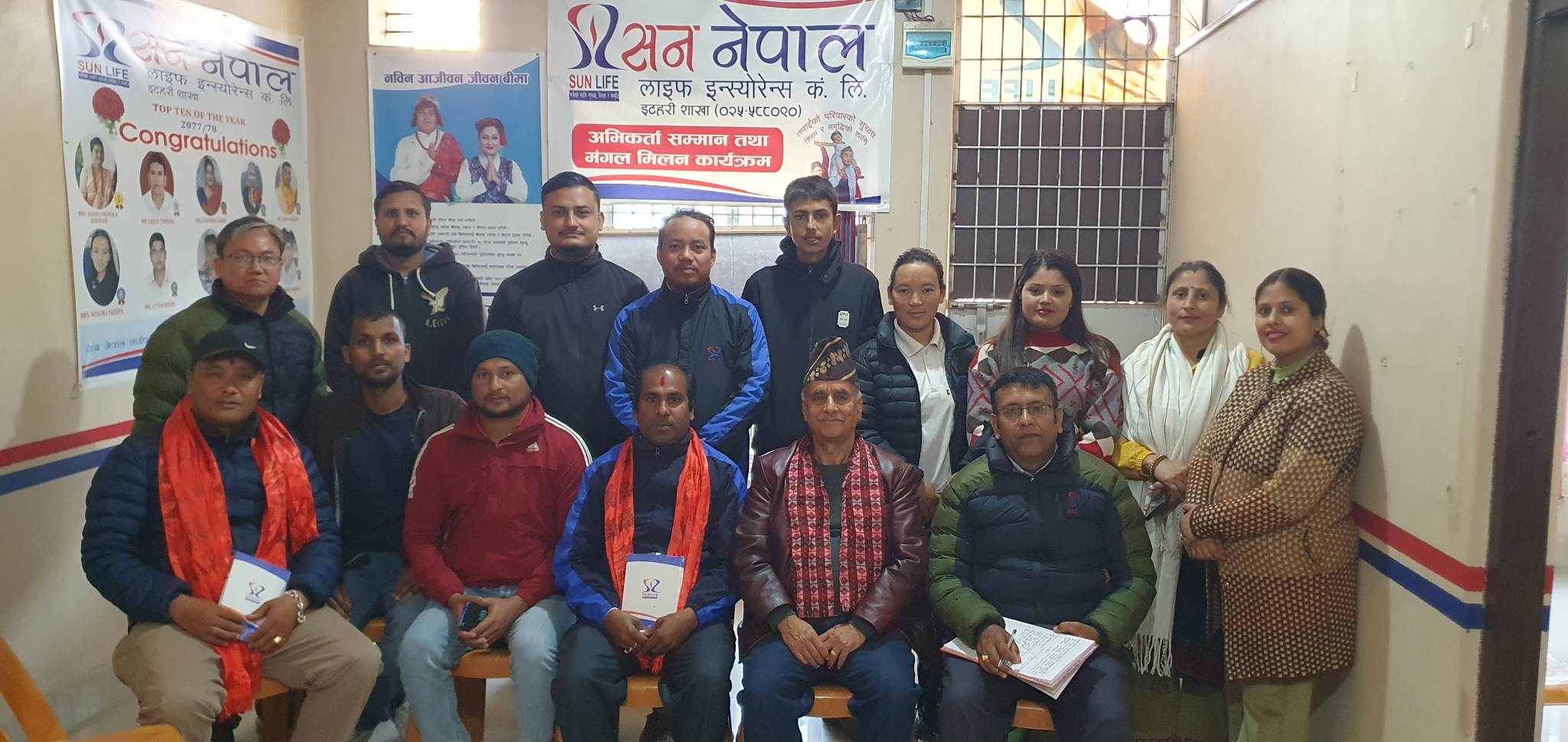जनमानसमा बीमाको महत्व, बीमा दाबि भुक्तानी लगाएतका महत्वपूर्ण प्रशिक्षण कम्पनिका महाप्रबन्धक कमलराज गौतमद्धारा प्रदान गरीएको थियो साथै उत्कृष्ट अभिकर्ताहरुलाई सम्मान समेत गरिएको थियो ।