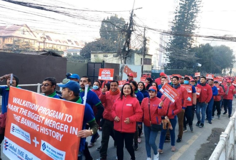 काठमाडौं । ग्लोबल आइएमई बैंक र बैंक अफ काठमाण्डू (बीओके)ले संयुक्त रुपमा देशव्यापी प्रभातफेरि कार्यक्रम सम्पन्न भएको छ । ग्लोबल आइएमई र बीओकेको मर्जर अवसरमा दुई बैंकले संयुक्त रुपमा काठमाडौं उपत्यकासहित नेपालका प्रमुख सहरहरुमा वाकथुन कार्यक्रम आयोजना गरेका हुन् ।