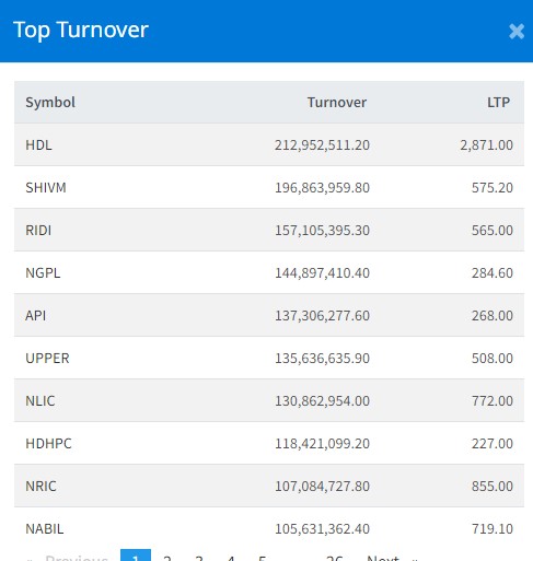 त्यस्तै, शिवम् सिमेन्ट्सको १९ करोड ६८ लाख, रिडी हाइड्रोपावरको १५ करोड ७१ लाख, ङादी ग्रुप पावरको १४ करोड ४८ लाख र अपि पावरको १३ करोड ७३ लाख रुपैयाँमाथिको कारोबार भएको छ ।